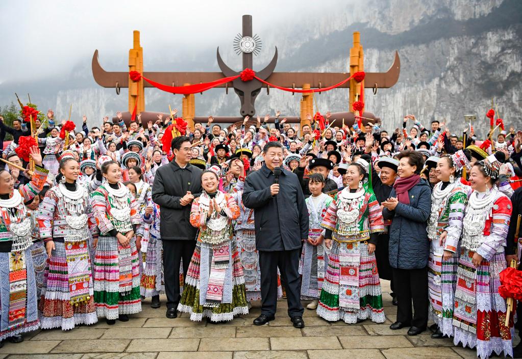 立春时节,乌蒙山腹地细雨绵绵,青山如黛。沿着蜿蜒曲折的山路,越过一道道山梁一道道弯,习近平总书记来到深山大江边的苗家小村,一排整齐有致的白色小楼映入眼帘。