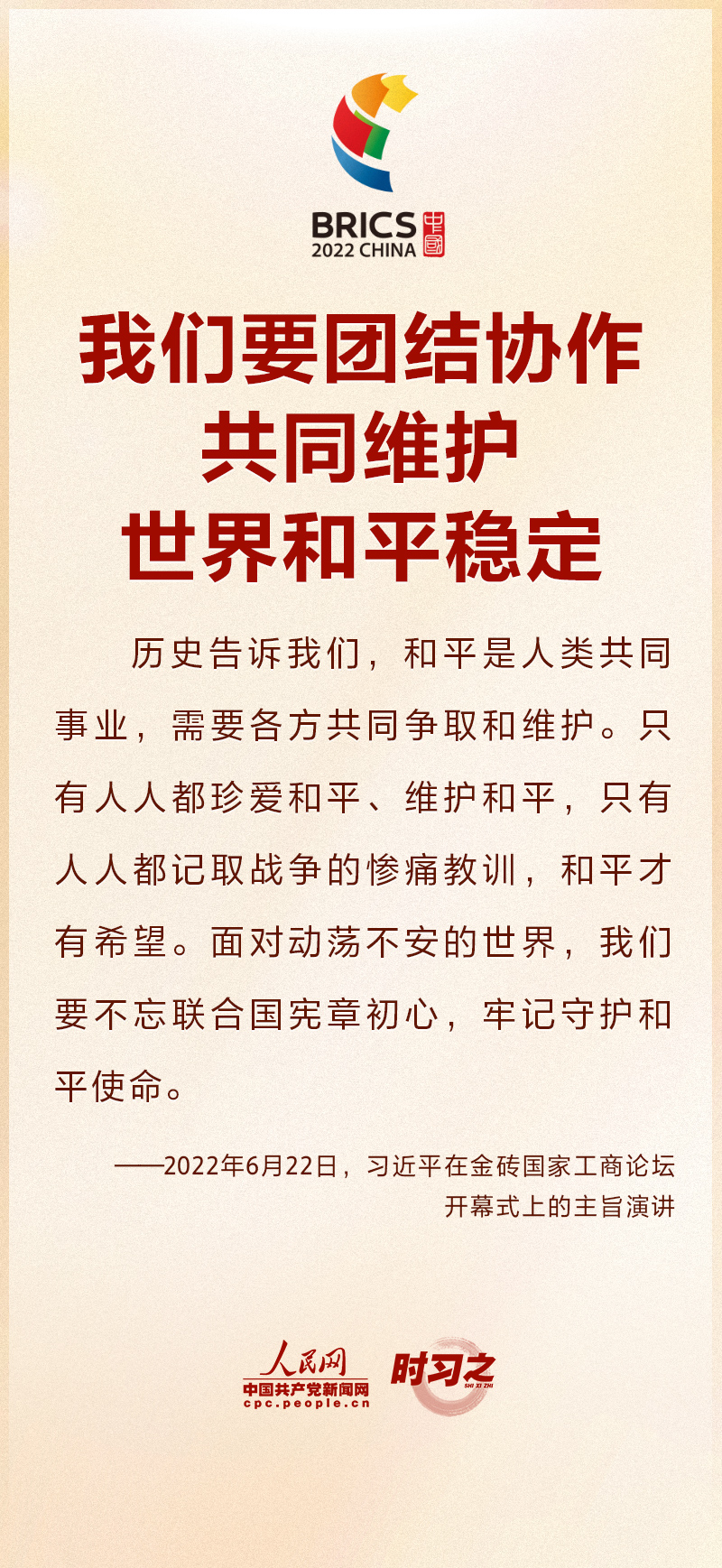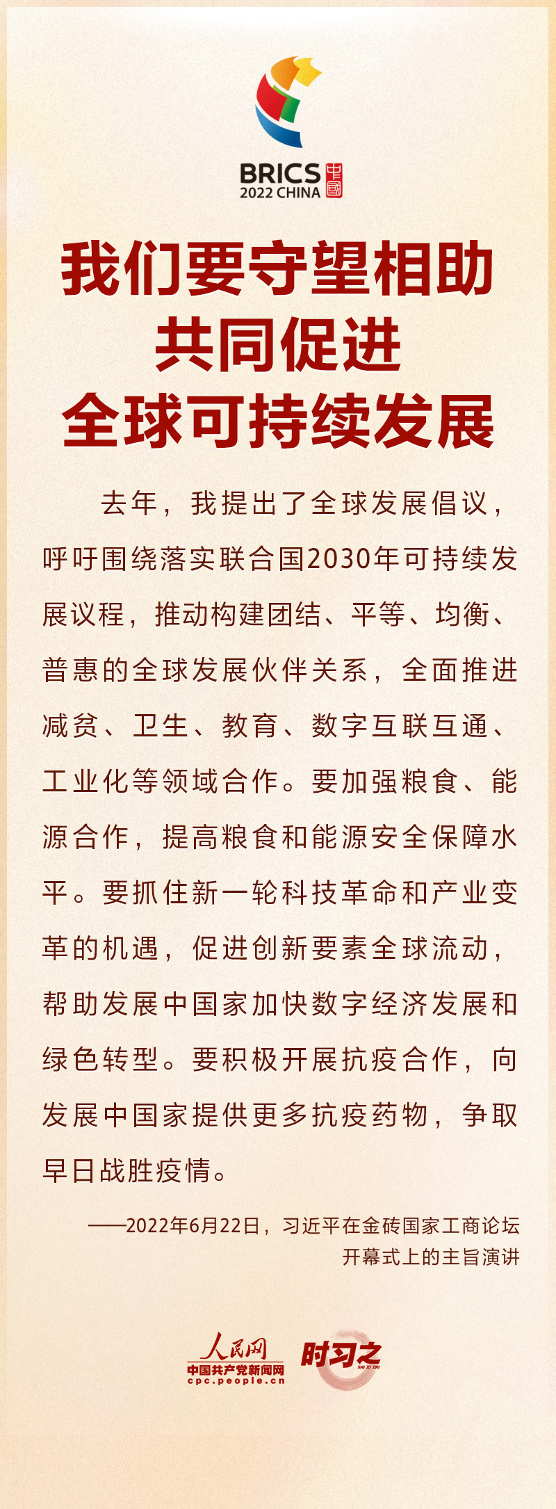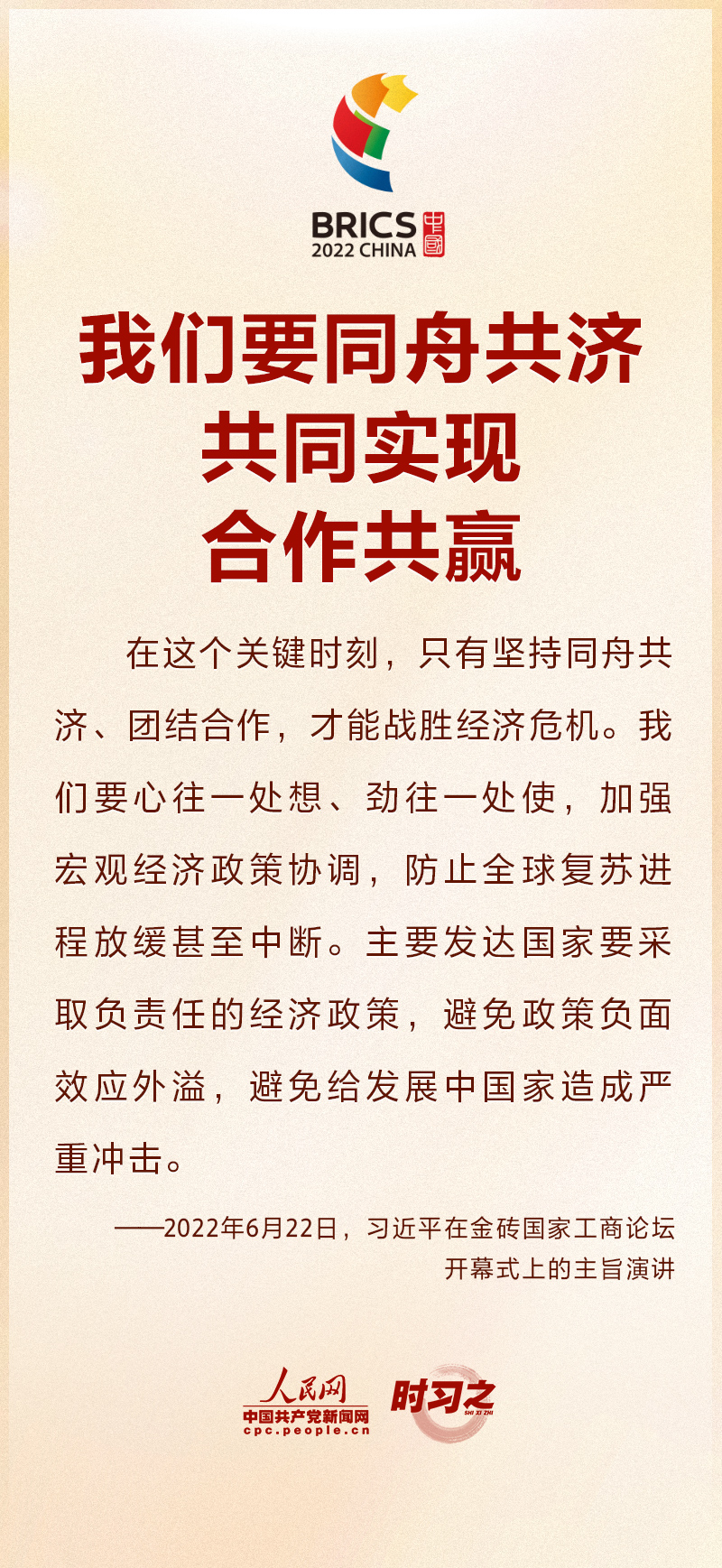 “尽管国际形势风云变幻,但开放发展的历史大势不会变,携手合作、共迎挑战的愿望也不会变。”6月22日晚,国家主席习近平以视频方式出席金砖国家工商论坛开幕式并发表题为《把握时代潮流 缔造光明未来》的主旨演讲,提出金砖合作的四点倡议。