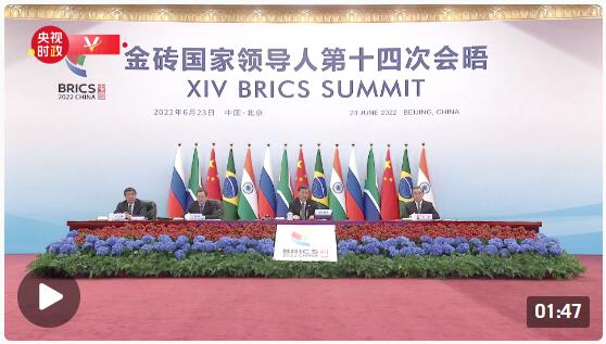 国家主席习近平23日晚在北京以视频方式主持金砖国家领导人第十四次会晤。