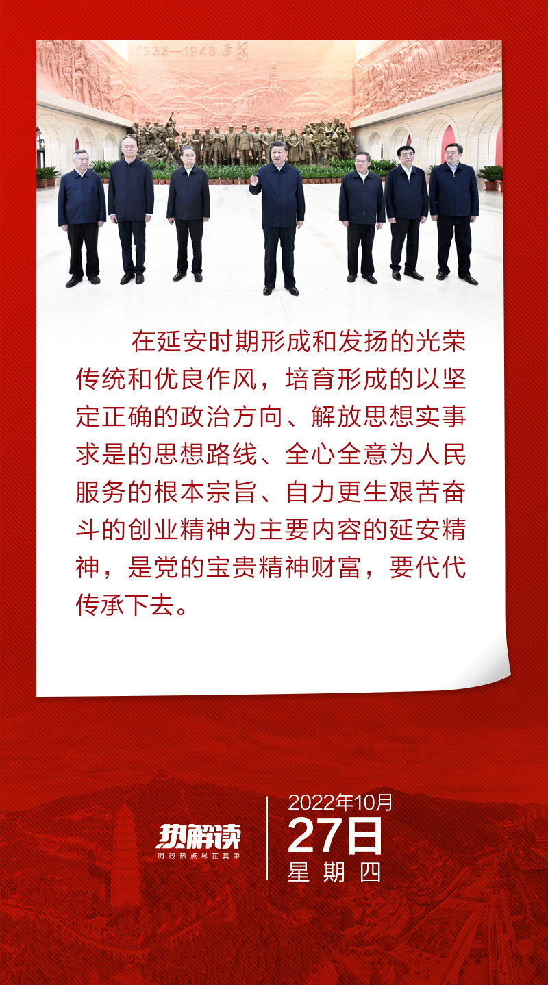 延安是中国革命的圣地、新中国的摇篮。10月27日,党的二十大闭幕不到一周,习近平总书记等中央领导同志专程从北京前往陕西延安——这一见证了中国共产党领导中国革命、探索马克思主义中国化时代化光辉历程的地方。