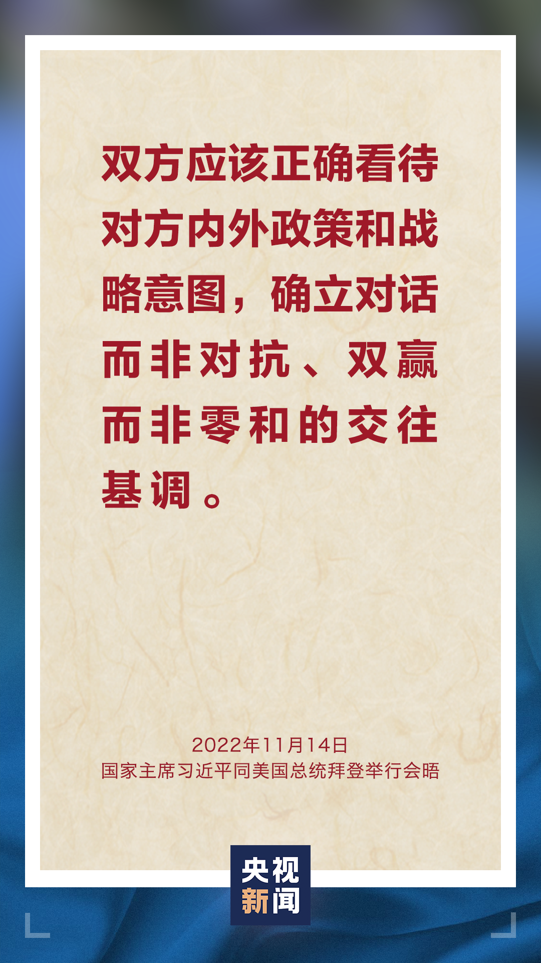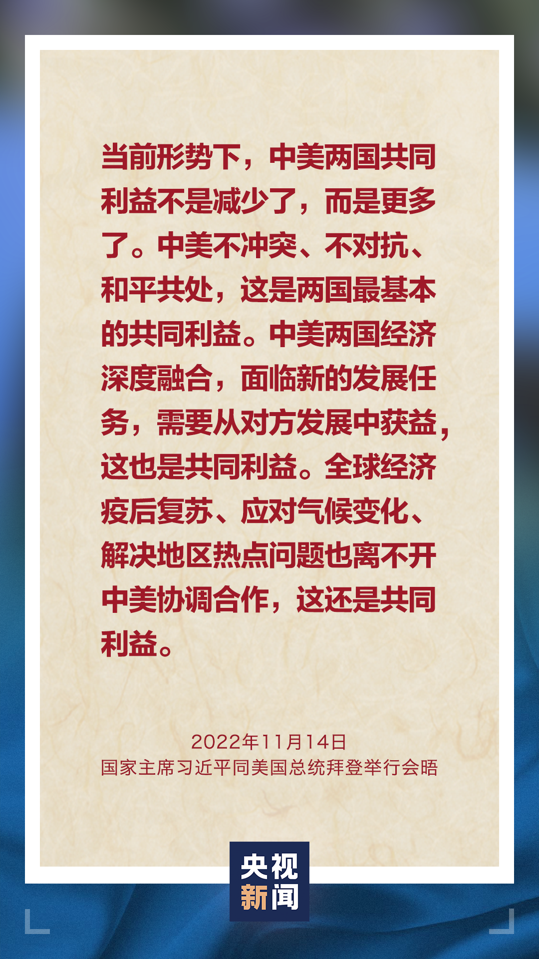 当地时间11月14日下午,国家主席习近平在印度尼西亚巴厘岛同美国总统拜登举行会晤。两国元首就中美关系中的战略性问题以及重大全球和地区问题坦诚深入交换了看法。