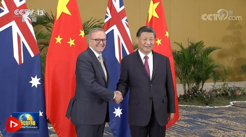 当地时间11月15日下午,国家主席习近平在巴厘岛会见澳大利亚总理阿尔巴尼斯。