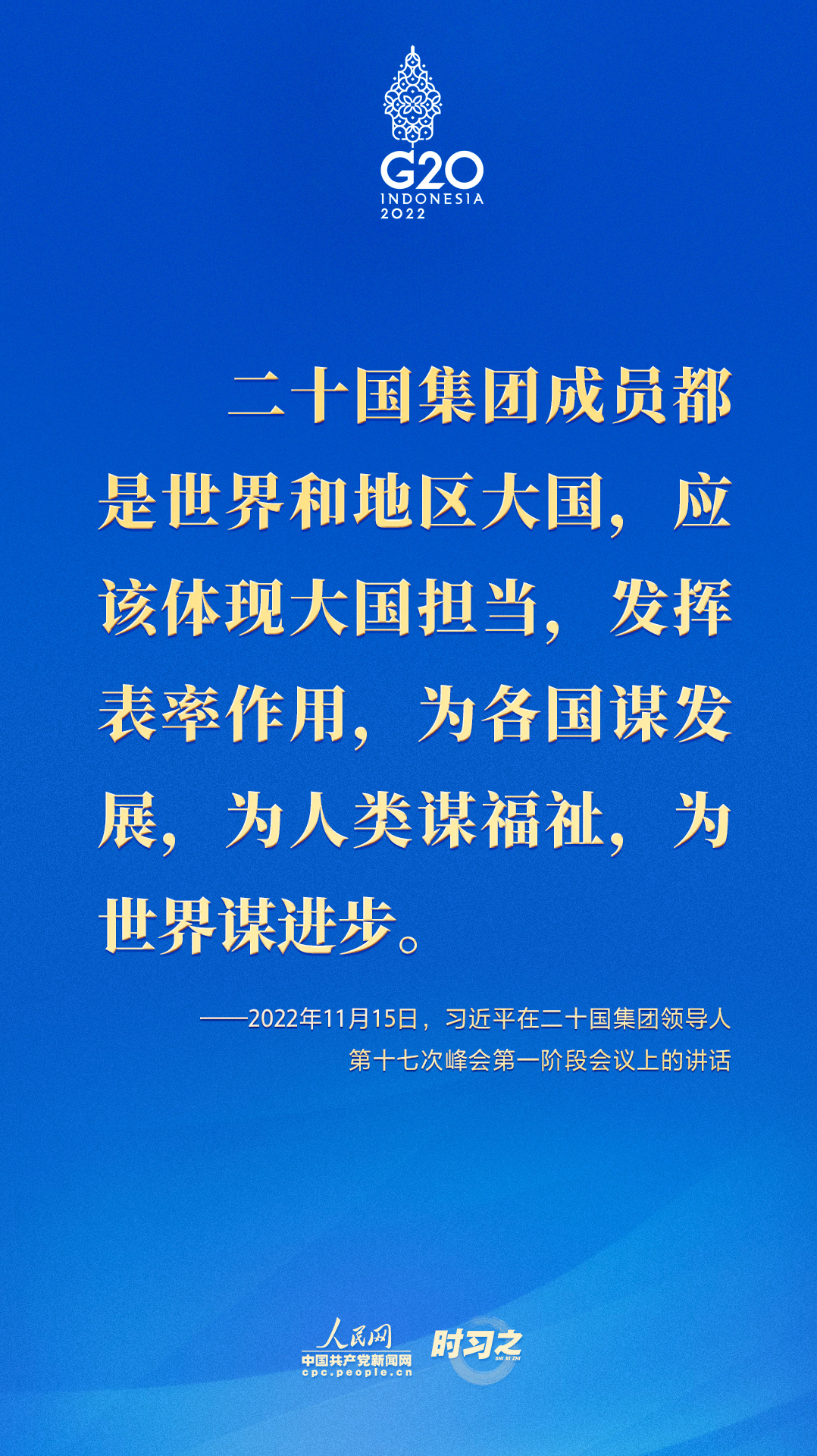当地时间11月15日,二十国集团领导人第十七次峰会在印度尼西亚巴厘岛举行。国家主席习近平出席并发表题为《共迎时代挑战共建美好未来》的重要讲话。