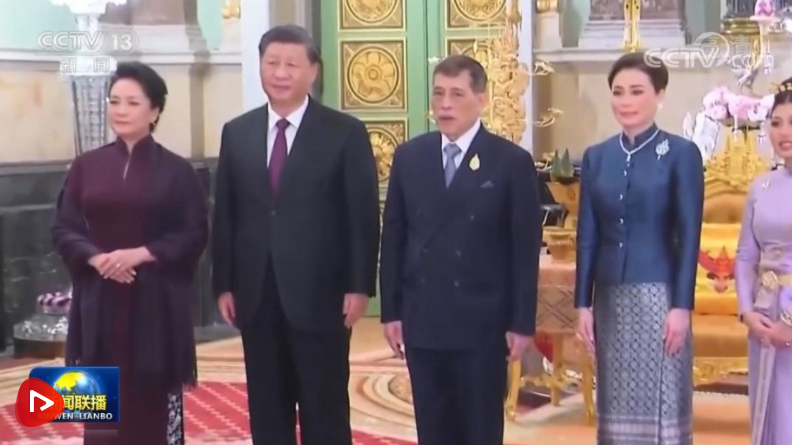 当地时间11月18日晚,国家主席习近平在曼谷大王宫会见泰国国王哇集拉隆功和王后素提达。