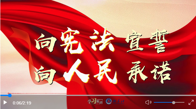“我宣誓:忠于中华人民共和国宪法,维护宪法权威,履行法定职责,忠于祖国、忠于人民,恪尽职守、廉洁奉公,接受人民监督,为建设富强民主文明和谐美丽的社会主义现代化强国努力奋斗!”