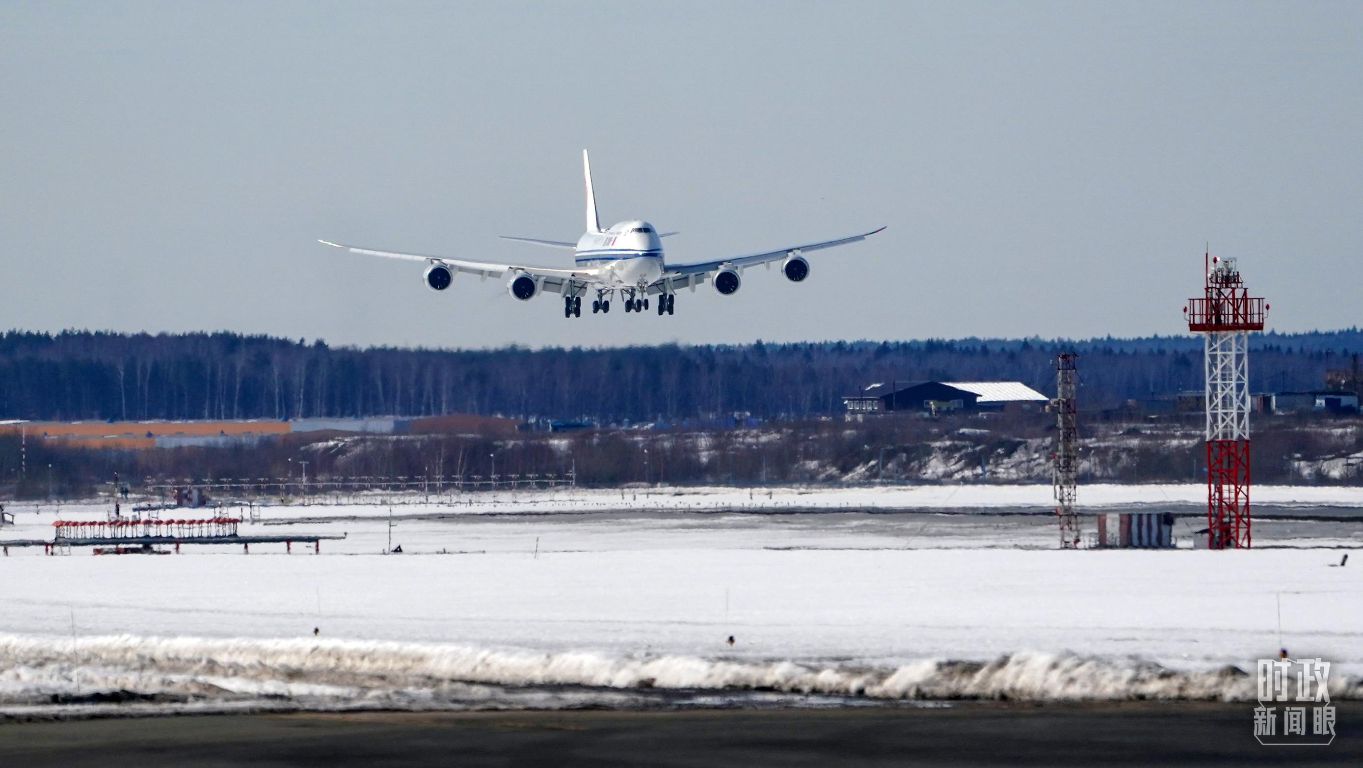 △习近平主席乘坐的专机即将落地莫斯科。(总台国广记者李晋拍摄)