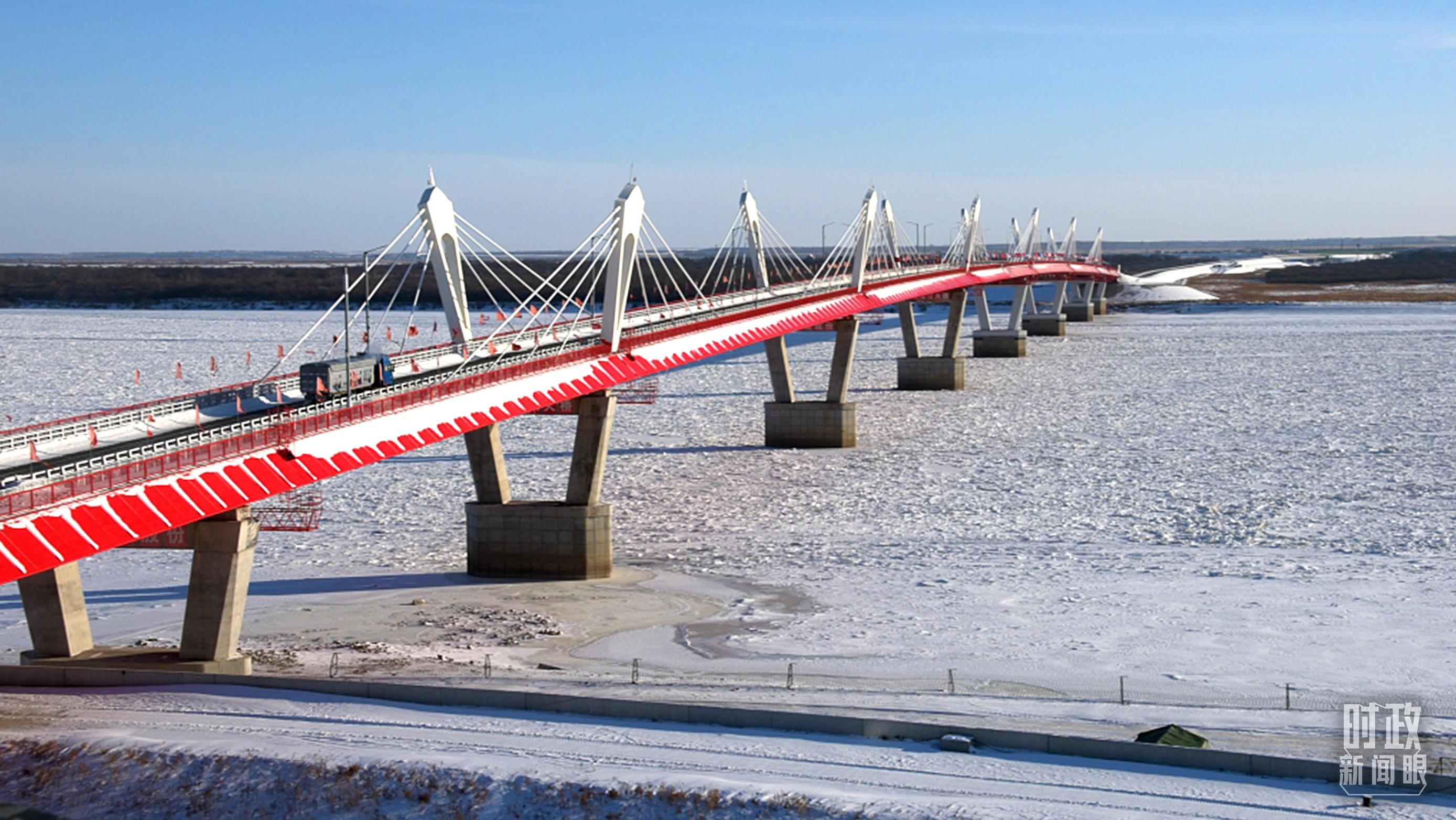 △2022年12月,满载货物的中方车辆从黑河国际公路桥驶往俄罗斯布拉戈维申斯克口岸。(图/视觉中国)