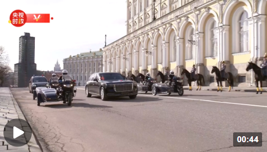 当地时间3月21日下午,习近平主席的车队抵达克里姆林宫,将出席俄罗斯总统普京在乔治大厅举行的欢迎仪式。