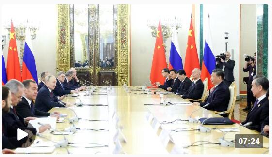 习近平指出,中俄互为彼此最大邻国,同俄罗斯巩固和发展长期睦邻友好关系,符合历史逻辑,是中方的战略抉择,不会因一时一事而改变。自我10年前首次对俄进行国事访问以来,中俄双方相互尊重、相互信任、互利互惠,两国关系历久弥坚,呈现更加全面、更加务实、更具战略性的特点。此访期间,我们车队途经之处,很多俄罗斯民众自发挥手致意,让我深切感到中俄关系具有深厚民意基础。不管国际风云如何变幻,中方都将继续致力于推进中俄新时代全面战略协作伙伴关系。我此次对俄罗斯的国事访问是友谊之旅、合作之旅、和平之旅。中方愿同俄方一道,继往开来,丰富中俄新时代全面战略协作伙伴关系内涵,为两国人民创造更多福祉,为促进人类进步事业作出更大贡献。