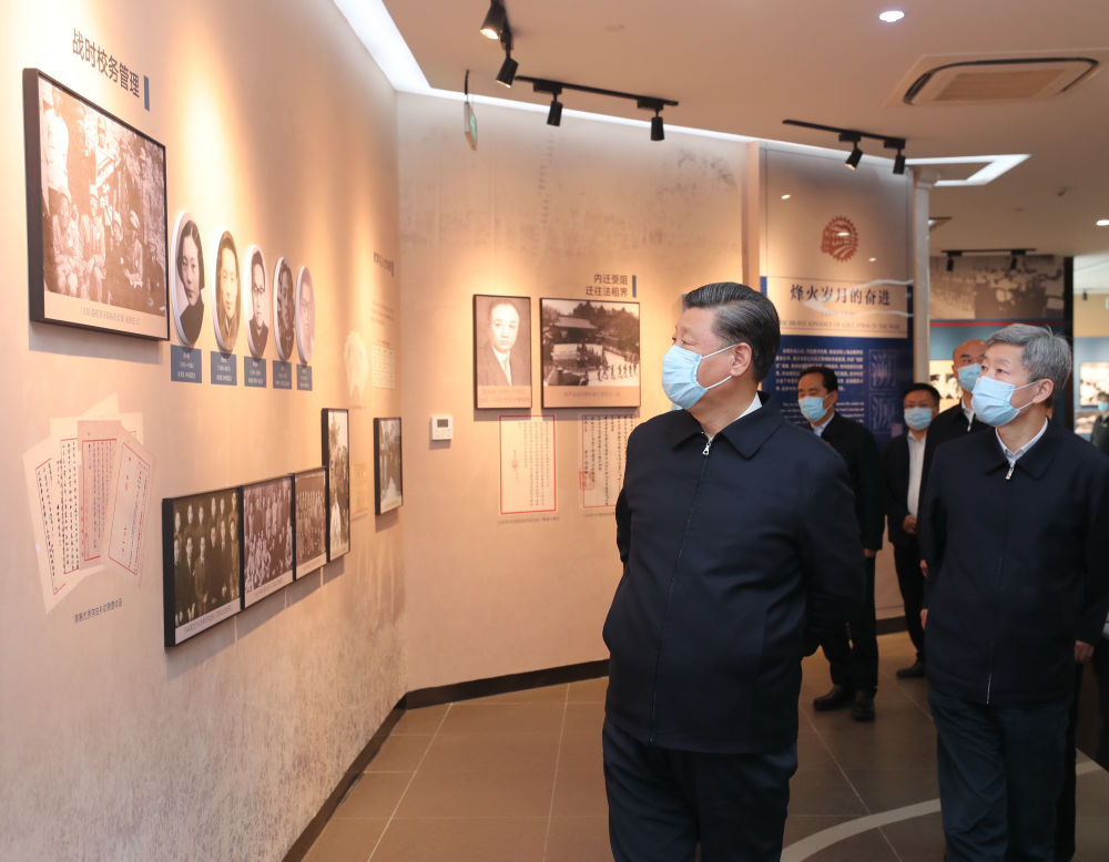 2020年4月22日,习近平在西安交通大学交大西迁博物馆参观。