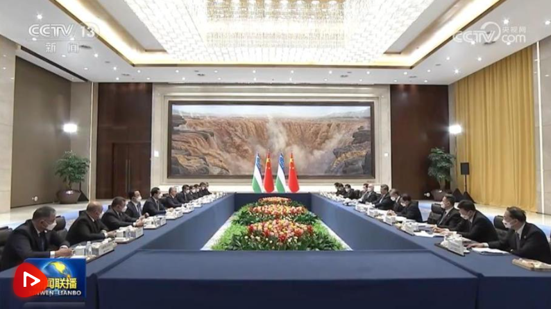5月18日下午,国家主席习近平在西安同来华出席中国-中亚峰会并进行国事访问的乌兹别克斯坦总统米尔济约耶夫会谈。