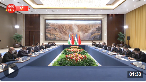 5月18日下午,国家主席习近平在西安同来华出席中国-中亚峰会并进行国事访问的乌兹别克斯坦总统米尔济约耶夫会谈。