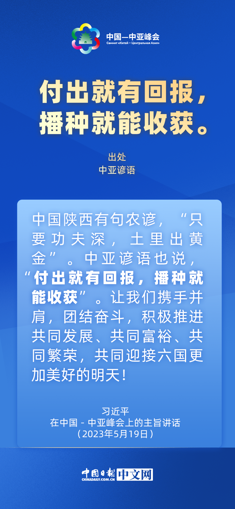 5月19日,国家主席习近平在中国—中亚峰会上发表主旨讲话。在讲话中,他引用这些古诗谚语,“典”亮中国中亚合作。