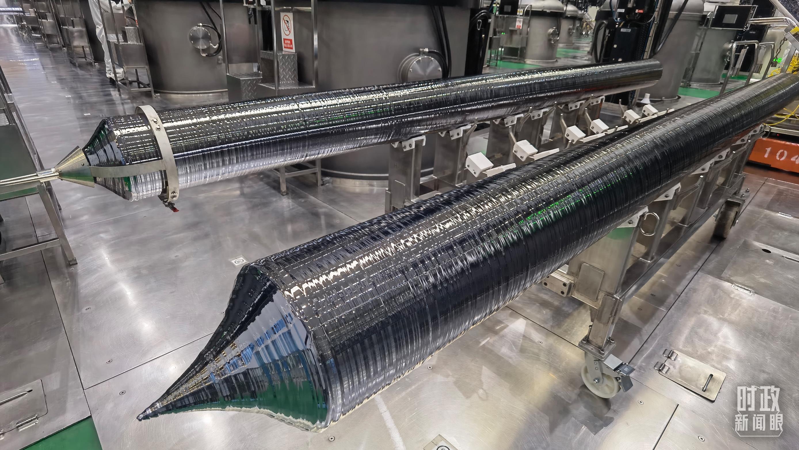 △园区企业生产的光伏单晶硅棒。(总台央视记者石丞拍摄)