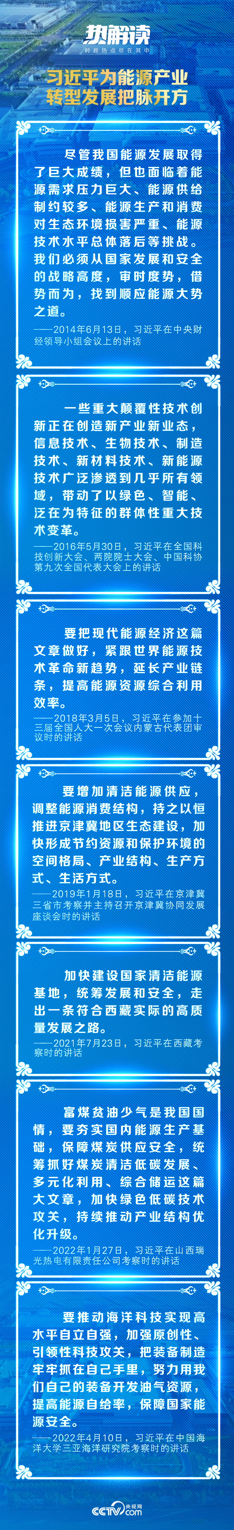 不同时期、不同阶段,习近平总书记对能源产业的科学指导,引领着能源发展改革方向,为我国能源产业高质量发展提供了根本遵循。在他的关心、推动下,近年来我国现代能源产业取得了令世界瞩目的突破性发展: