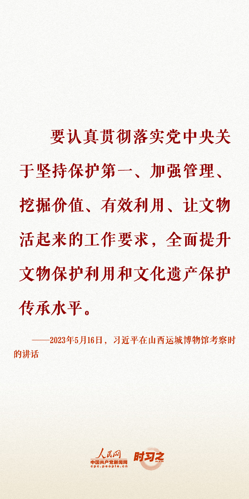 习近平总书记一直高度重视文物保护利用和文化遗产保护传承,在深入地方考察过程中常调研当地特色文化和历史古迹,并在多个不同场合反复强调文化和自然遗产保护工作的重要性。