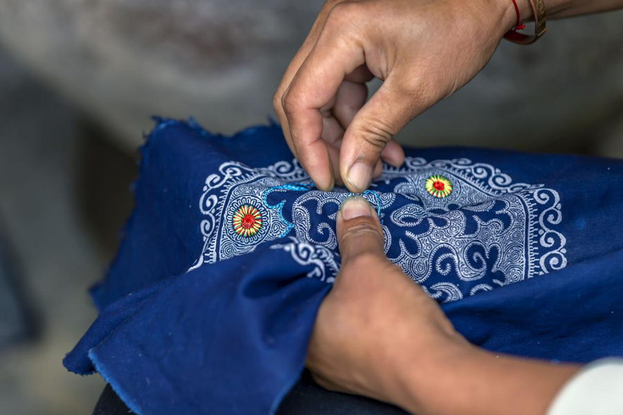 毕节市黔西县新仁苗族乡化屋村是苗族聚居地,民族特色鲜明,被命名为“中国民间文化艺术之乡”。苗绣、蜡染等成为这个村重点发展的特色产业。红色、绿色、蓝色……飞针走线五彩缤纷;绣、插、点、挑……制作手法千变万化的苗绣在2006年首批列入国家级非物质文化遗产代表性项目名录。