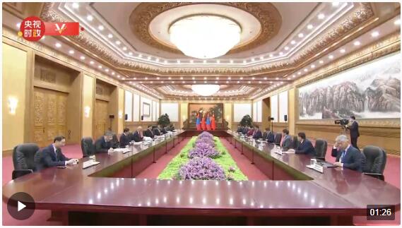 习近平指出,时隔近1年再次同老朋友会面,感到很亲切。欢迎总统先生出席第三届“一带一路”国际合作高峰论坛。去年11月,你对中国进行国事访问取得圆满成功。双方发表联合声明,确立了共建和平共处、守望相助、合作共赢的两国命运共同体方向,开启了中蒙关系发展新篇章。作为好兄弟、好邻居、好伙伴,中蒙双方要继续携手同行,在变乱交织的世界中筑牢两国命运共同体的根基,推动中蒙全面战略伙伴关系在新时代实现更大发展,更好惠及两国人民。