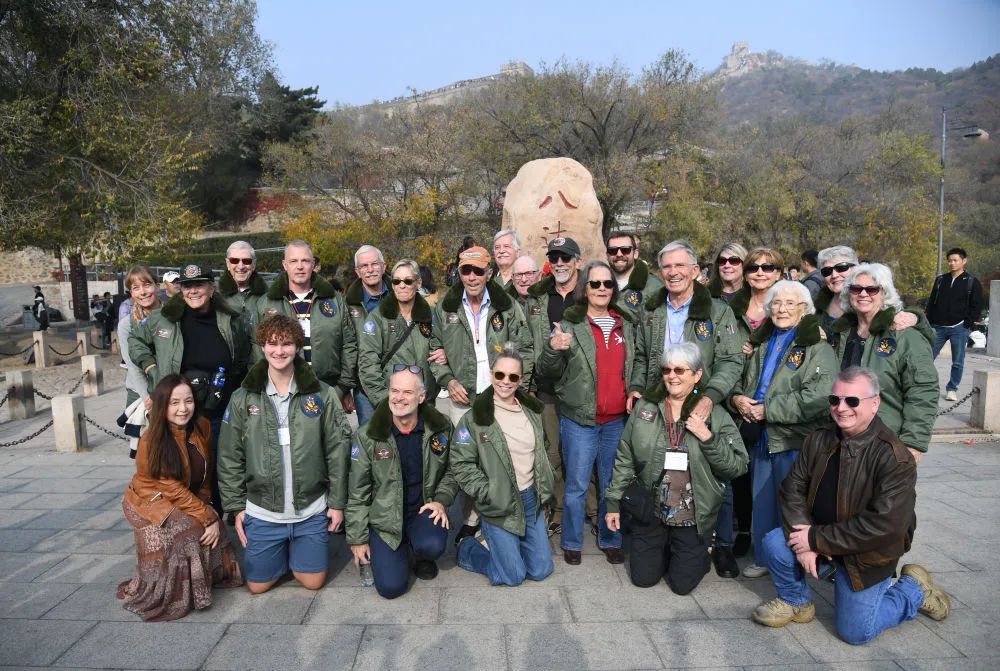 △2023年10月29日,飞虎队老兵莫耶一行人在北京八达岭长城合影留念。