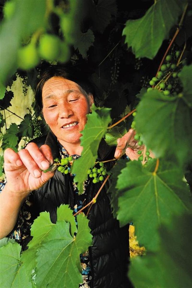 种植基地工作人员查看瓜果长势。 本报记者 丹增群培 摄