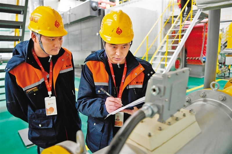 拉萨市暖心燃气热力有限责任公司工作人员在锅炉房内检查设备运行情况。本报记者 王敏 摄