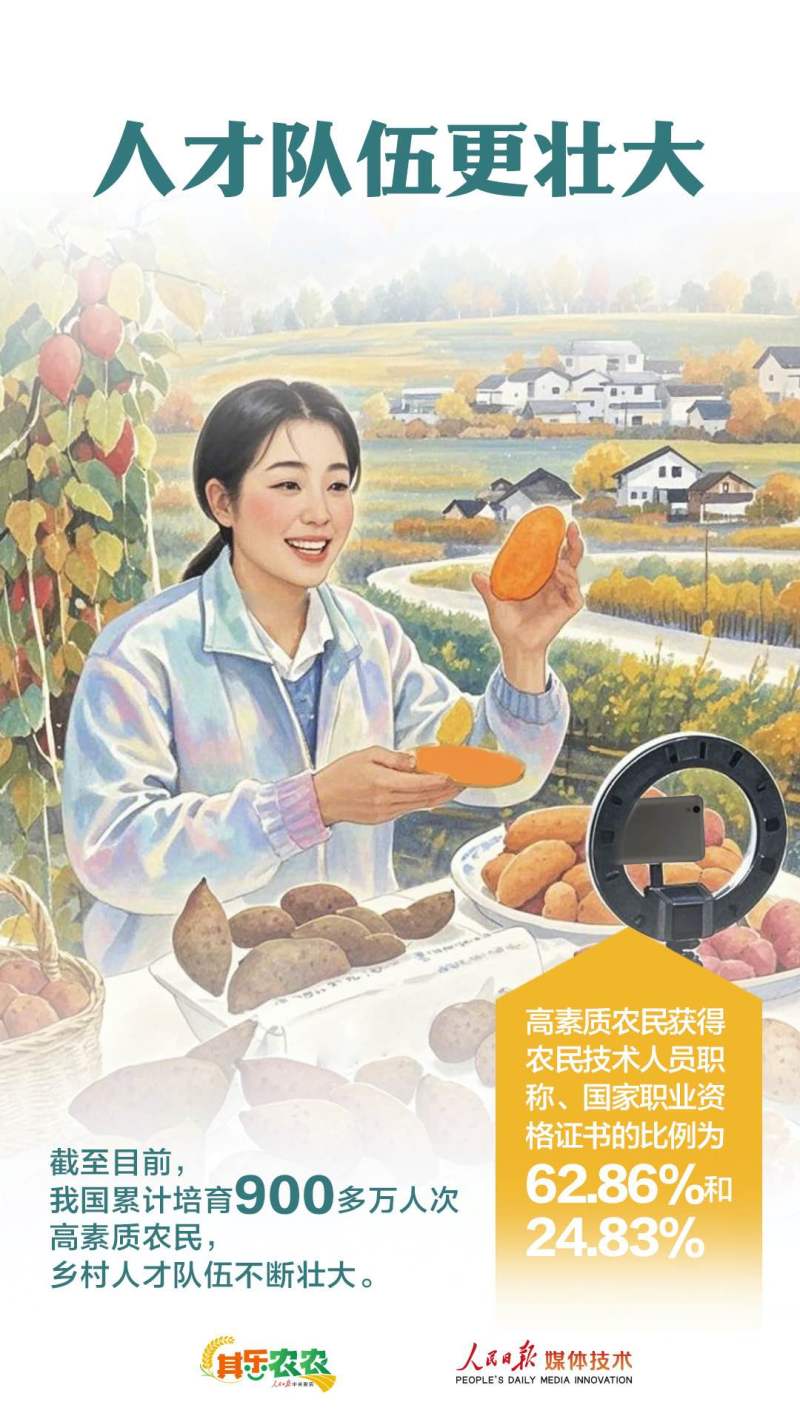 推动乡村全面振兴,关键靠人。培育高素质农民,能有效提高农业生产效率与产品质量,推动农业向规模化、标准化、品牌化、绿色化加快转型,还能示范带动更多农户兴业增收,共同富裕。