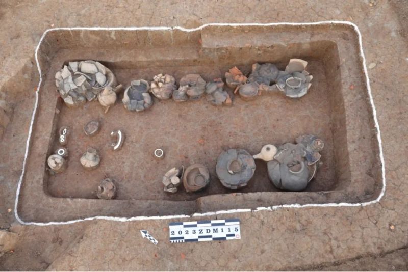 2023年以来,省文物考古研究院围绕明晰遗址内部布局和确认遗址宏观结构两个方面,再次开展对东山村遗址的主动性考古发掘。截至目前,共发掘新石器时代大型红烧土堆积4处、墓葬17座、房址1座、灰坑20座、灰沟1条、水井1口、柱洞3个。