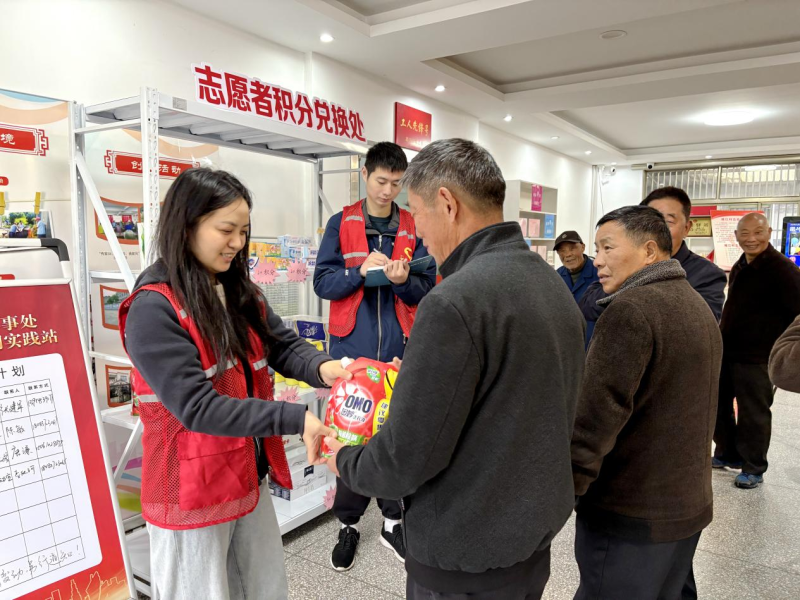 ▲滨江新区办事处越江村村民积分兑换现场。