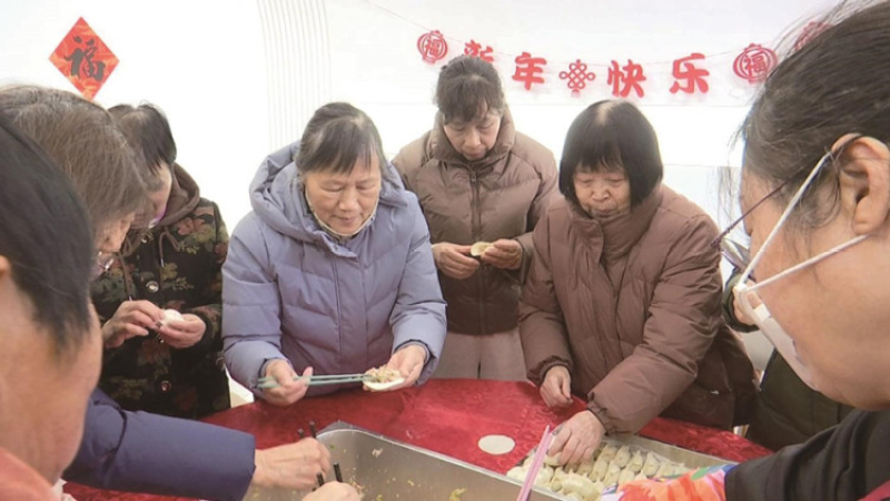 挖上满满一勺猪肉白菜馅,放进薄薄的饺子皮里,75岁的赵春亚一脸笑容。“今天我们平岗村老年助餐点请吃团圆饭,不光饺子皮、饺子馅给我们准备好了,厨房里还准备了十几种年菜,真的很贴心。”说话间,包好的第一批饺子已经下锅了。近日,钟楼区五星街道平岗村专门组织了辖区内60岁以上的退养人员和80周岁以上的退休工人一起包饺子,共享团圆饭。