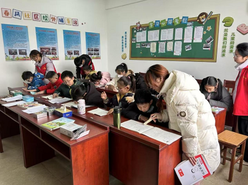 金坛春风社区则开办了家门口的“金”课堂寒假公益托管班,专门聘请师范类义教老师陪伴孩子们。托管班主要辅导小朋友们完成各类寒假作业,此外还开设音乐、美术、手工等兴趣课堂,丰富辖区小朋友们的寒假生活,帮助他们全面健康成长。