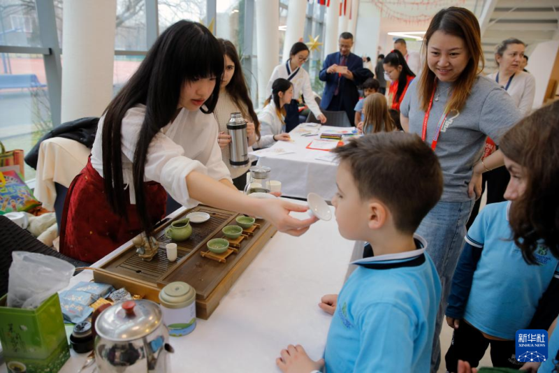 在罗马尼亚首都布加勒斯特,由当地华侨华人学生自编自导的新春联欢会1月31日在布加勒斯特国际学校举行。联欢会上,学生们通过歌舞、钢琴演奏等形式展现了中华文化的独特魅力。学校还设置了茶艺、折纸、套圈、踢毽子等互动体验环节。通过参与这些趣味游戏以及写福字、做灯笼等传统手工艺活动,当地学生感受到中国春节的喜庆,加深了对中华文化的认知。