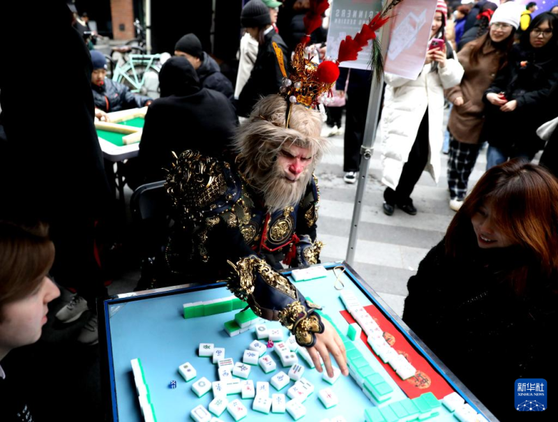 今年,伦敦卡姆登集市首次举办了中国春节庆典活动。喜庆的春节灯饰高高悬挂,在微风中轻轻摇曳;空气中弥漫着中式点心的香气,令人垂涎欲滴。人群中,偶尔可见汉服衣袂翩然掠过,许多人手中还拿着红色的灯笼和“福”字。在庆典活动上,当地市民珍妮·米尔沃德一边喊着“碰”,一边开心地将麻将桌上的“南风”牌收到面前。她不仅自己打得得心应手,还不时给身边的新手讲解规则。