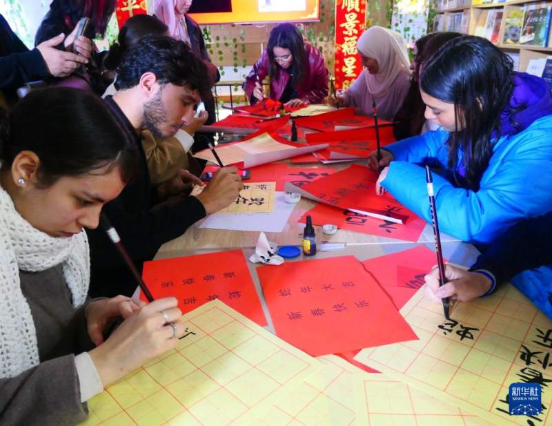 春节期间,突尼斯东方知识书店举行了春节相关文化活动,参与者通过观看视频短片、有奖问答、写福字等活动了解中国春节常识并亲身体会中国年味。突尼斯迦太基大学高等语言学院中文专业学生兴致勃勃地演唱了《月亮代表我的心》等中文歌曲。
