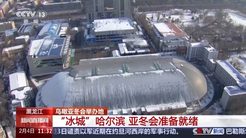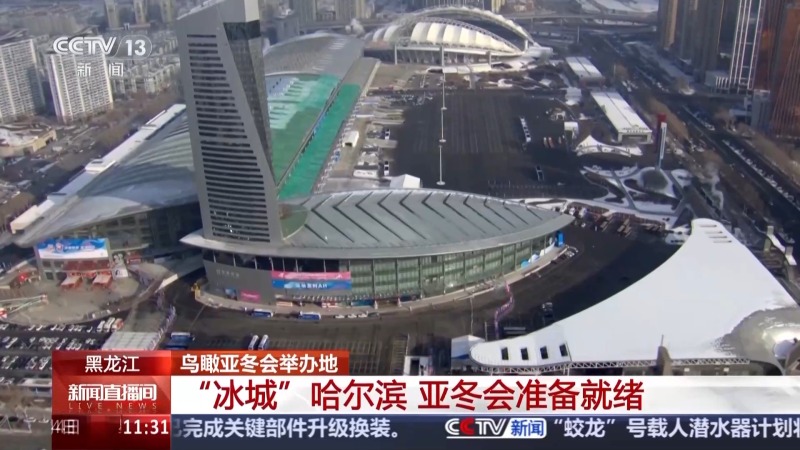 此刻我们正飞在哈尔滨国际会展中心的上空,这里是第九届亚冬会哈尔滨赛区的核心区域。大家可以看到,这片区域汇聚了第九届亚冬会冰上项目的运动员村和主媒体中心。位于市中心的运动员村,现在已经开村,在比赛期间将迎接来自20多个国家和地区的近千名参赛人员。运动员村内设施齐全,分为运行区、居住区和交通区,设有清真餐厅、运动员餐厅、医疗诊所、健身中心等,为运动员和随队官员提供全方位的服务保障。而主媒体中心则于1月31日正式启动运行,分为主新闻中心和国际广播中心两部分。值得一提的是,此次亚冬会首次实现了单语种采访、多语种分发的功能,进一步提升了媒体服务的国际化水平。本届亚冬会的开幕式也将在这里举行。