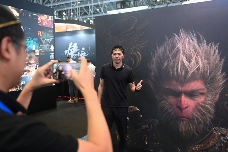 2024年9月25日,观众在第三届全球数字贸易博览会的游戏科学展区打卡。新华社记者 黄宗治 摄