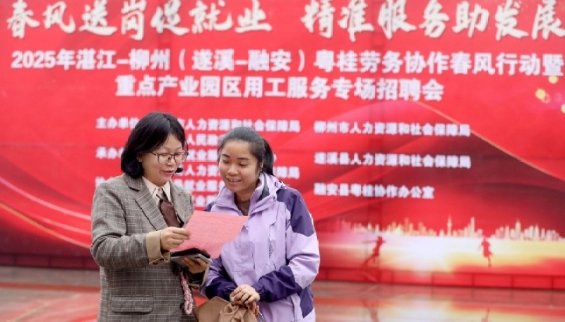 2025年3月,求职者在粤桂劳务协作春风行动招聘活动上了解岗位信息
