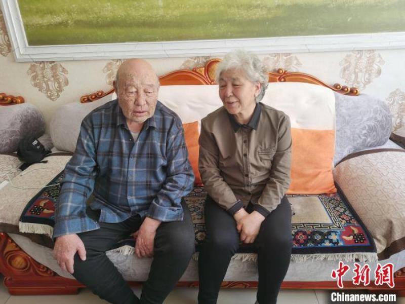 3月21日,乌云花和老伴古日巴斯尔并排坐在沙发上,用极具控制力的技巧,演唱了一段音色优美的古如歌。