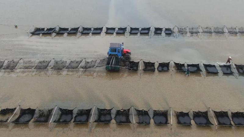 眼下,江苏如东正值“海上春耕”,条斑紫菜收获正忙,工人们趁着晴好天气,抓紧采摘。