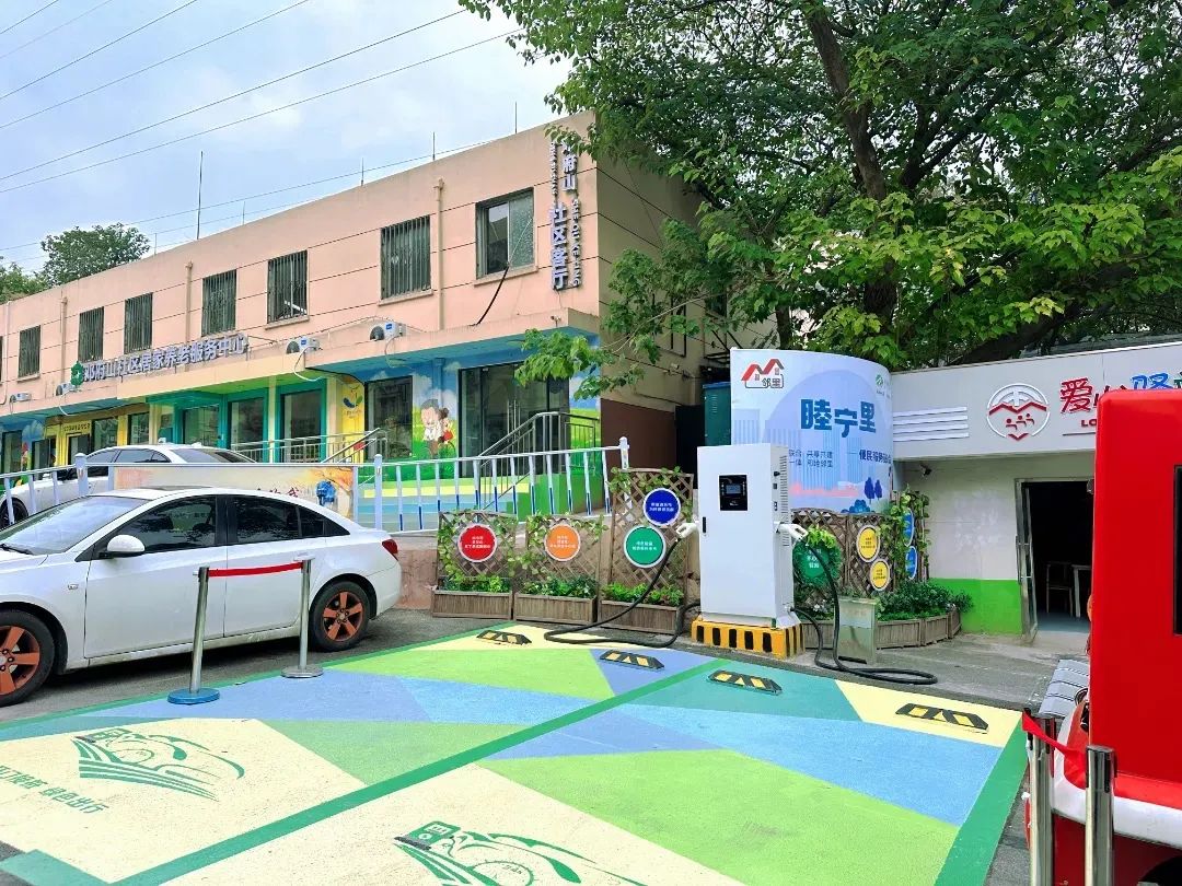 破解老旧小区“桩”难题,邓府山社区的关键词是“合作”。2022年开始,社区党委联合国网南京供电公司、物业公司,光居民议事会就开了数十场。前前后后花了一年多时间,经过地质专家实地勘察,最终将邓府山村小区一处山坡的坡脚整平,开发出一个可满足14辆新能源汽车同时充电的“绿能充电广场”,改造费用由国网南京电动汽车服务有限公司承担。充电桩电价和居民用电电价相同,大大低于市面商业充电桩执行的商业电价。