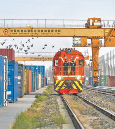 一列中欧班列缓缓驶入新疆霍尔果斯铁路口岸站。 |