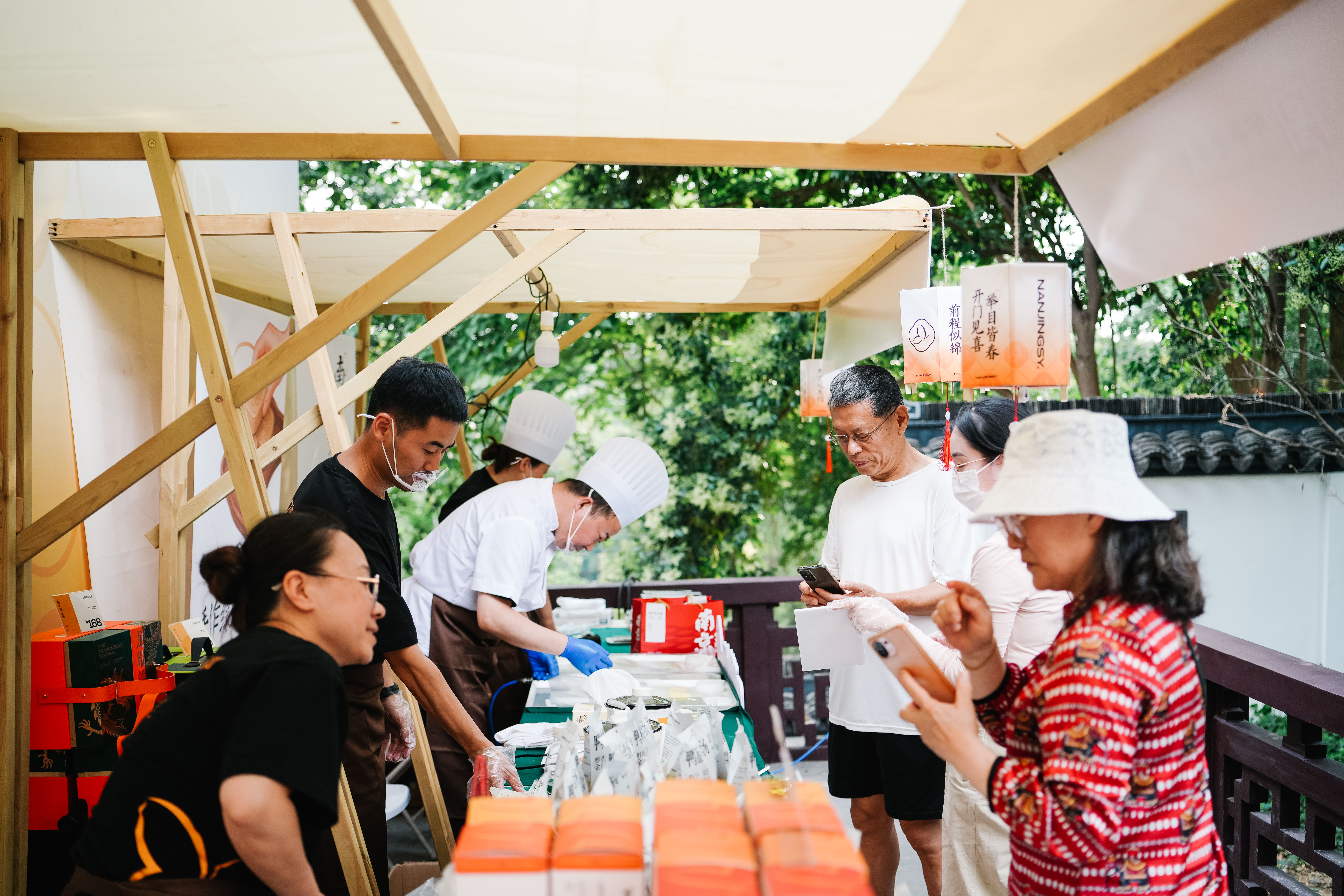 南京同仁堂、冠生园两家中华老字号,是本届市集打卡消费的必选项。乐掌柜的“茶饮铺子”是南京同仁堂全新打造的草本茶饮品牌,在初夏季节来一杯,清凉又爽身。冠生园则将南京本土小吃投喂给大观众——松香掉渣的金陵桃酥、馅料扎实的花生酥、包装方便的速食鸭血粉丝汤……这一届的“非遗生活荟”又好逛又好吃。