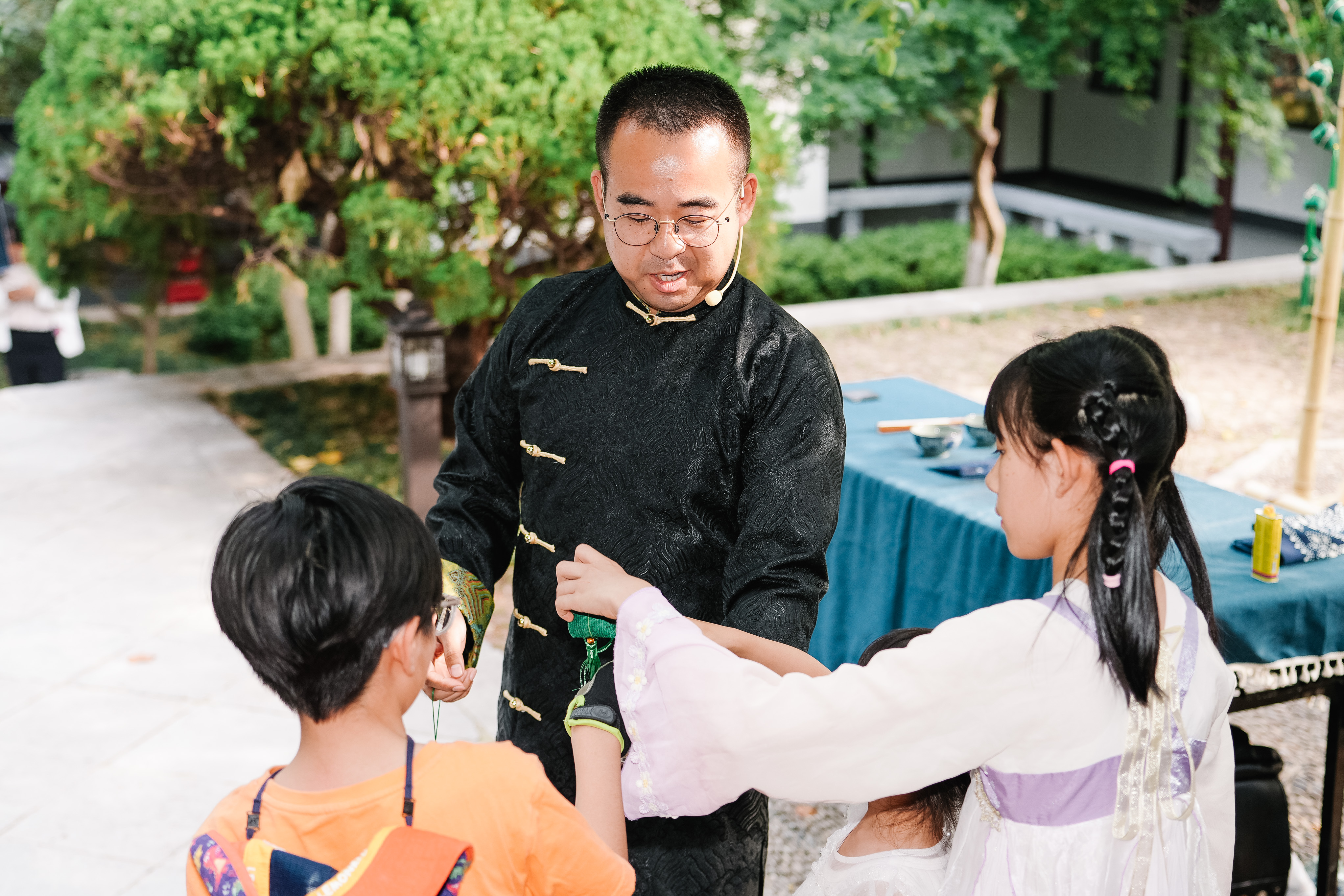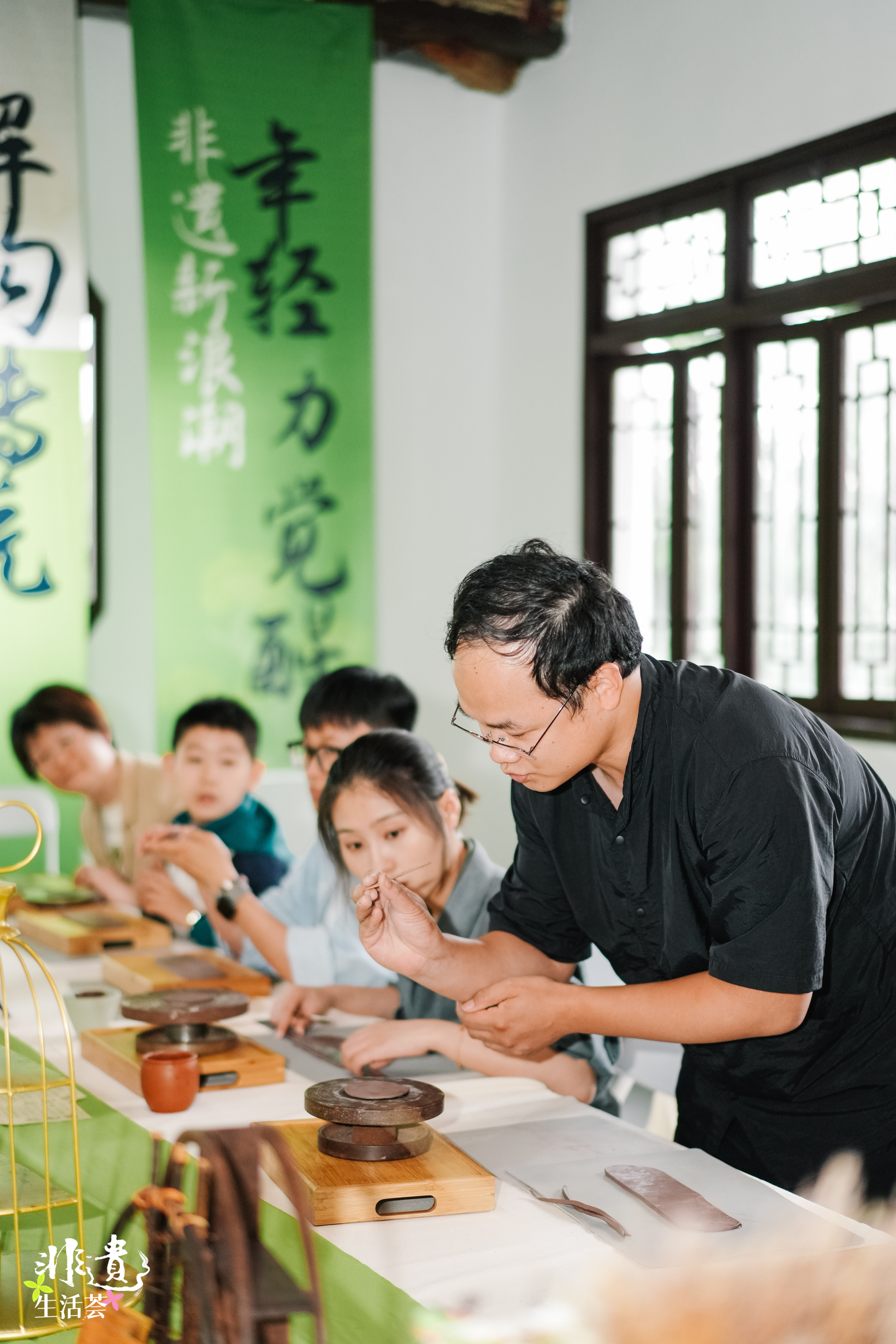 在“非遗生活荟”现场,观众还可以亲手体验掐丝珐琅、皮影戏、南京绒花、紫砂杯等非遗技艺。来自十竹斋、南京艺术学院的专业老师,现场讲解非遗技艺,演示操作要点。在紫砂杯体验环节,90后国家级工艺美术师叶鑫手把手教孩子们制作紫砂茶杯,“短短一个小时,很多孩子萌生了对紫砂艺术的喜爱,他们在手工制作中还融入童心,比如有的孩子就将茶杯把手捏成可爱的兔子耳朵。”体验课结束后,叶鑫连忙将这些半成品送回宜兴丁蜀烧制,当烧制完成的紫砂茶杯送到手中时,每个参加体验的孩子就有了一段难忘的“非遗记忆”。