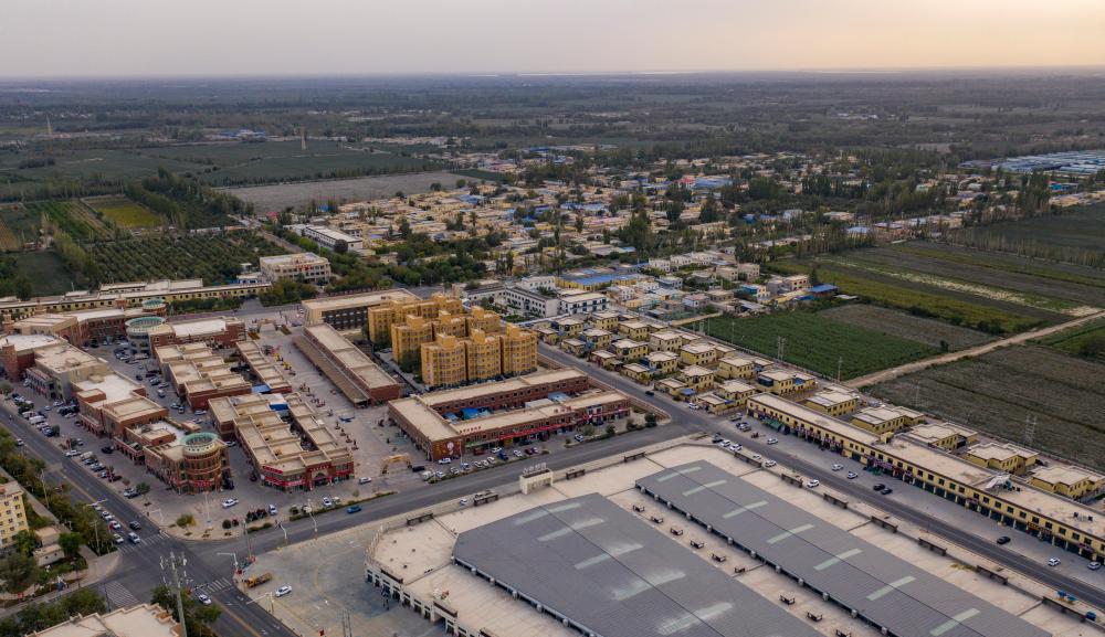 这是9月18日拍摄的新疆巴音郭楞蒙古自治州尉犁县达西村(无人机照片)。