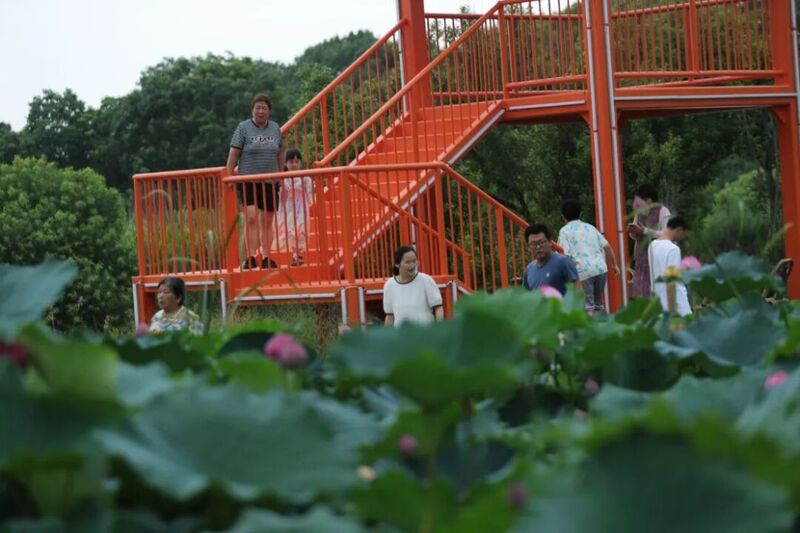 漫步其中,碧波轻漾,水杉挺拔,荷花摇曳,满眼都是治愈系的绿。这里不只治愈了水系,也治愈了都市人的心~