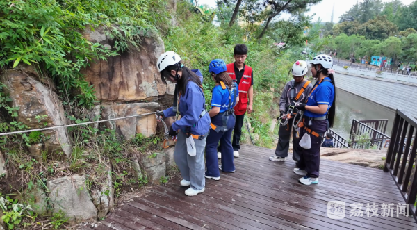 在连云港,渔湾景区凭借“白+黑”的全时段活动,吸引了众多游客。为应对客流高峰,景区提前部署,全力做好接待服务工作。游客中心、检票口等一线岗位,工作人员以饱满的热情,耐心解答游客各种问题,迎接八方宾客。渔湾景区运营部工作人员顾子恒说:“国庆期间,我主要负责为游客穿戴和检查安全装备及上线讲解。假日里游客增多,我们全程保持专注,随时为大家提供指导与帮助。虽然假期不能休息,但能看到游客们挑战成功后的笑脸,我们觉得所有的坚守都特别有意义”。