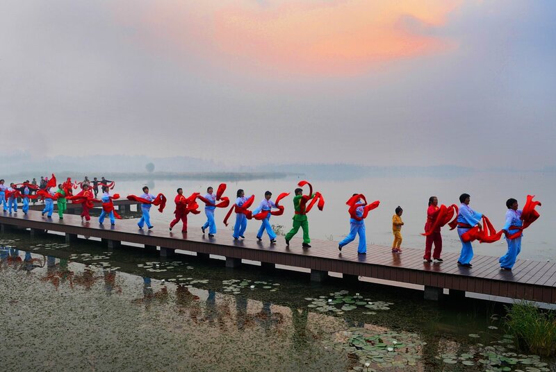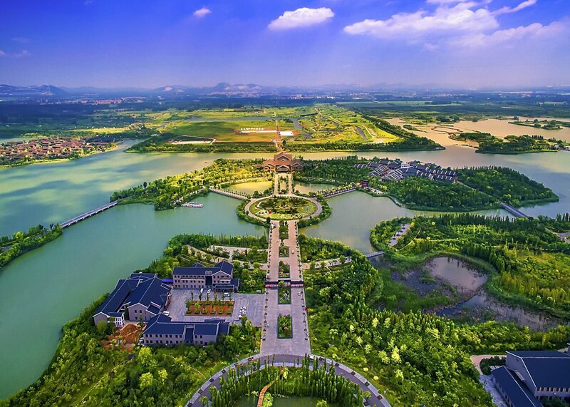 转机来自2010年,那年春天,贾汪区携手多家高校、科研单位,以“五位一体”的创新模式,在这片荒芜之地开始书写奇迹。村庄搬迁、土地整理、生态修复、湿地开发……他们不只是整治一片湖,更是修复一段人与自然断裂的关系。地形重塑、土壤再生、水体净化、植被重绿,塌陷的水域不再象征荒芜破败,而被巧妙转化为沼泽、浅滩、深潭交织的湿地廊道。芦苇、菖蒲、池杉林如一支支碧绿的笔,在水中写下生态复苏的诗行。鱼回来了,蛙鸣再起,鸟群纷纷落户——它们以翅膀投票,选择在这一片曾经被遗忘的土地上,安放它们的巢与歌。如今,这里栖息着青头潜鸭、小天鹅、东方白鹳等30多种国家重点保护野生动物、200多种鸟类和300多种植物资源,成为名副其实的生物多样性王国。