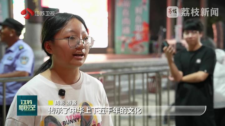 荔枝新闻中心记者汤安佶说:“这里是南京夫子庙的文德桥,这里也是自古的赏月佳地,我们可以看到桥上也是人山人海,甚至有一点寸步难行。但是大家看到头顶的这轮明月,看到了这金陵夜景,我觉得今晚也是值得了,这个也是独属于南京的浪漫和诗意。”