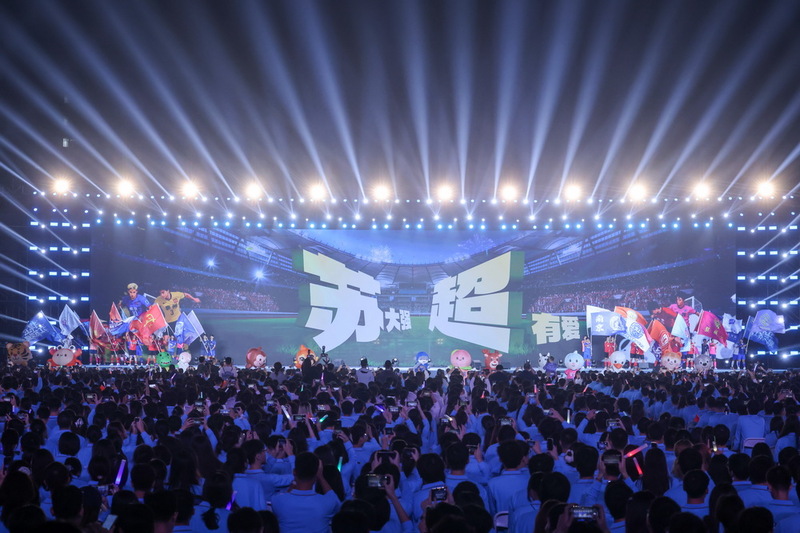 这个夏天,“苏超”创造了太多让人热血沸腾的时刻。12日晚,“苏超”十三市球员代表的亮相点燃了观众的热情,台下呐喊声一片。