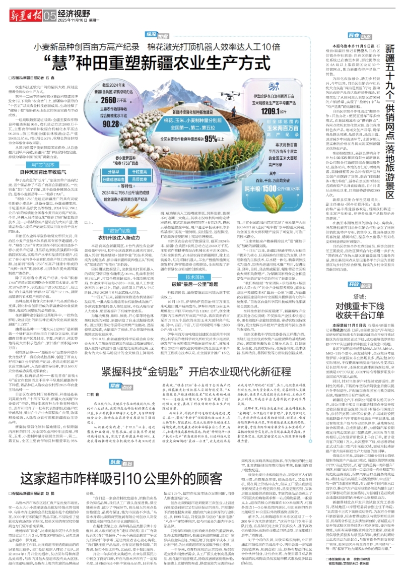 从区内供需平衡到保障国家供给,从总量提升到单产突破,新疆用“慧”种田的科技实践,持续为端稳中国“饭碗”贡献力量。