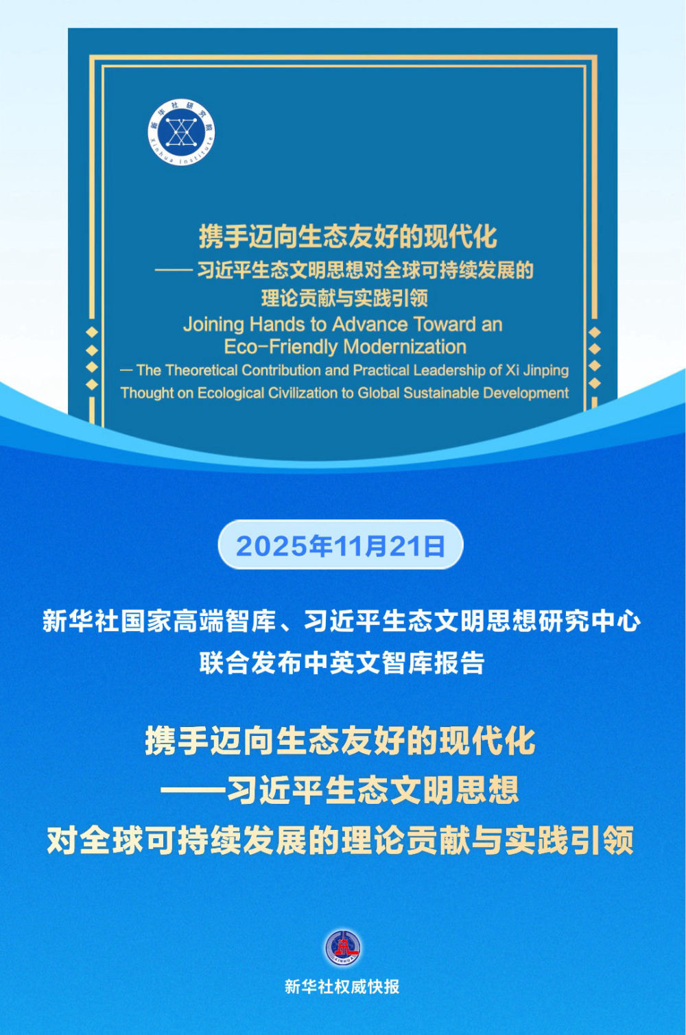 这是继2024年11月新华社国家高端智库和习近平生态文明思想研究中心在成都发布《让世界读懂美丽中国的“绿色密码”——习近平生态文明思想的中国实践与世界贡献》后,又一对习近平生态文明思想进行阐释的重磅智库报告。